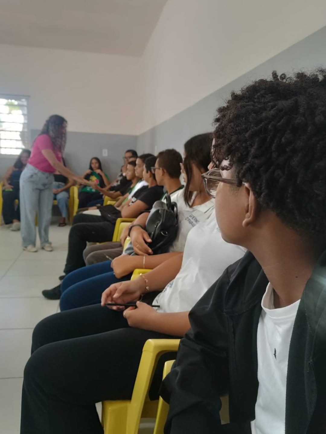 A atividade foi conduzida pela psicóloga Jéssica, representante da Secretaria da Mulher e da Diversidade Humana, que proporcionou um espaço acolhedor, participativo e dinâmico, estimulando o envolvimento ativo dos adolescentes. Ao longo do encontro, os participantes tiveram a oportunidade de compartilhar vivências, opiniões e percepções, fortalecendo valores como respeito, empatia e valorização das diferenças.